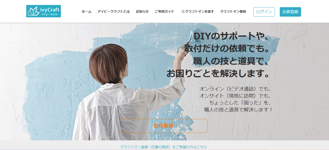 株式会社アイビーリンクス(本社:東京都千代田区、代表取締役:水野功)は、DIYサポートと小工事に特化した、職人と一般家庭をつなぐマッチングサービス「ivyCraft(アイビークラフト)」(β版)の依頼者登録の受付とプレマッチングを2月1日より開始します。昨年9月から受付を開始した依頼者の事前登録数と職人(クラフトマン)の登録数が一定数に達し、本年1月より希望者によるテストマッチングを数回実施した結果、依頼者、職人双方から高い評価を受けています。